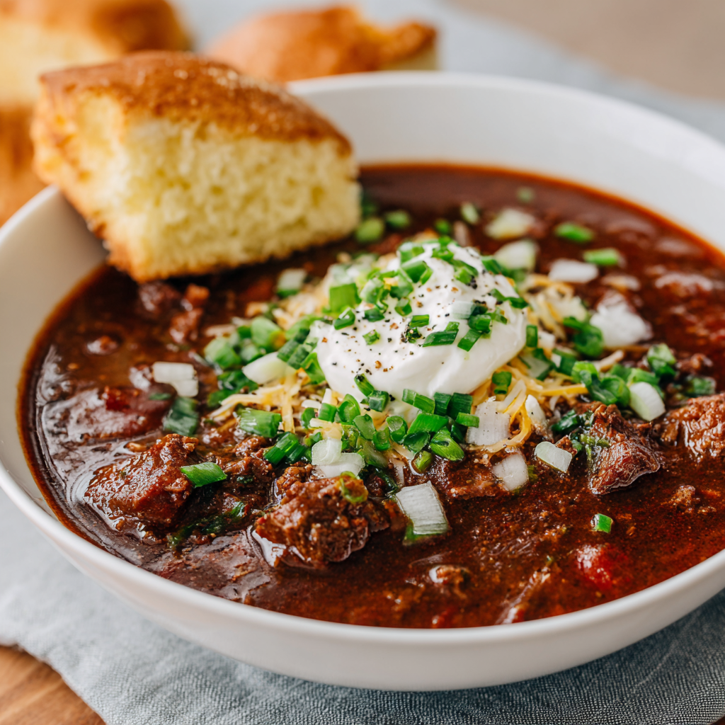 This Texas chili recipe is a hearty and flavorful dish that’s perfect for gatherings, game days, or a cozy night in. Bursting with rich flavors from various peppers and tender beef, this chili is sure to impress. The absence of beans makes it an authentic version that highlights the meat and spices, making it a true Texan delight.